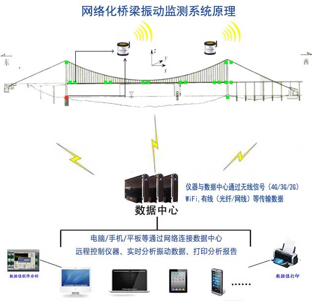 本系統(tǒng)均利用手機(jī)信號(hào)或Wifi網(wǎng)絡(luò)方式傳送數(shù)據(jù)至上位機(jī)或數(shù)據(jù)服務(wù)平臺(tái)。測(cè)試人員可遠(yuǎn)程、長(zhǎng)時(shí)間(24小時(shí)*365天)監(jiān)測(cè)橋梁振動(dòng)數(shù)據(jù)。