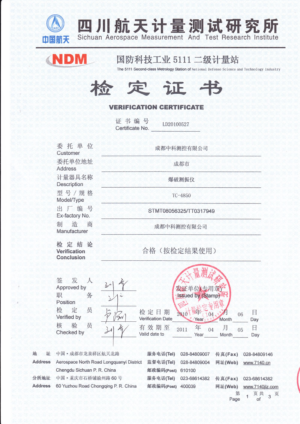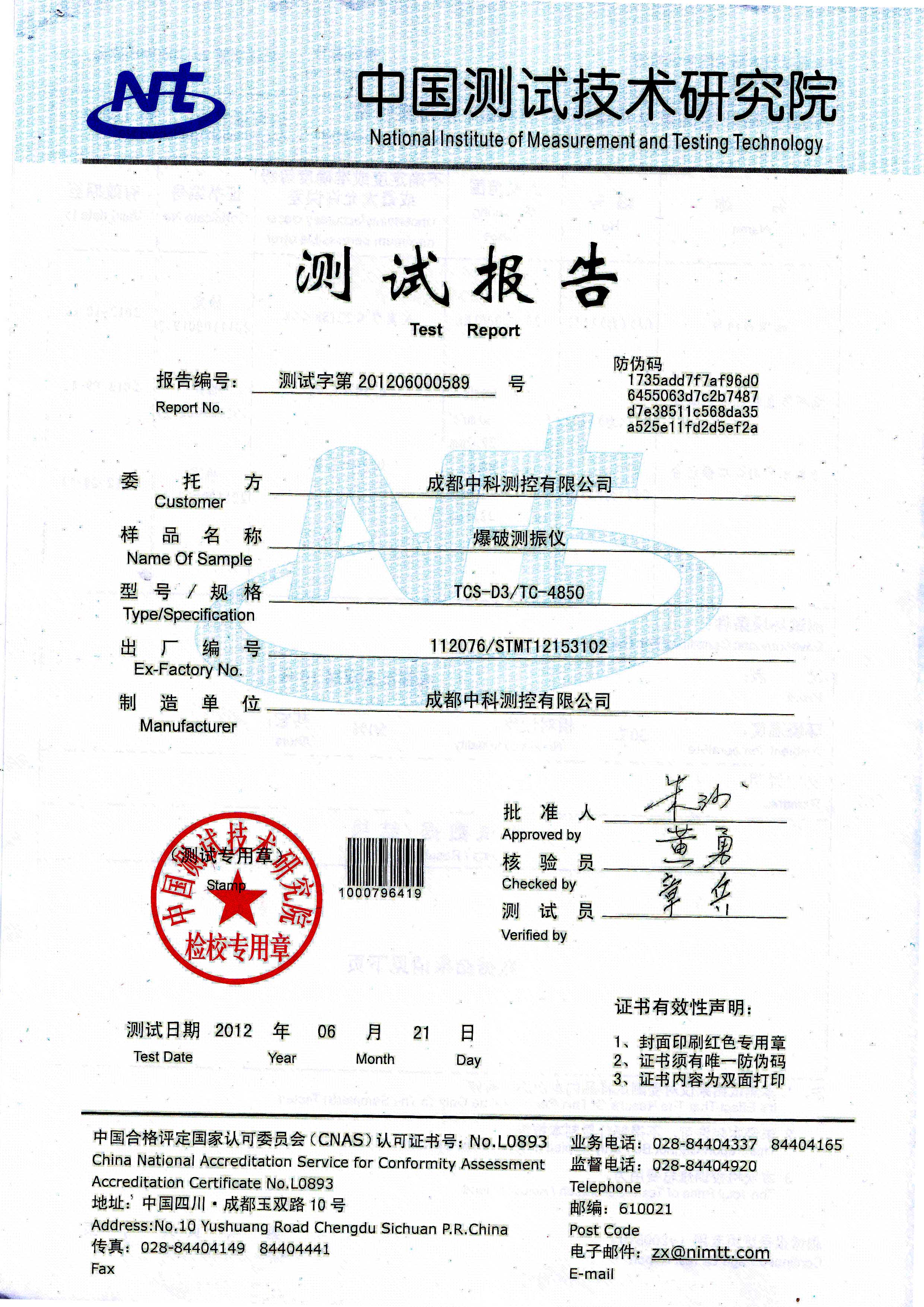 四川計(jì)量檢測科學(xué)研究院校準(zhǔn)證書