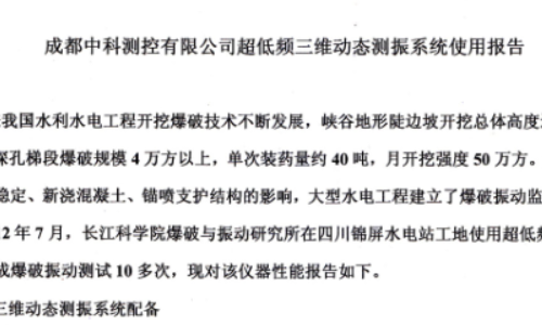 長江科學(xué)院關(guān)于爆破測振儀用戶使用報(bào)告